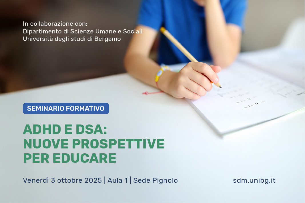 Il seminario è promosso nell’ambito del Corso di Perfezionamento in DSA e benessere nei contesti scolastici della Scuola di Alta Formazione SdM – Università degli studi di Bergamo, in collaborazione con il Dipartimento di Scienze Umane e Sociali, e propone una lettura ecologica dei disturbi, che considera i fattori relazionali e ambientali nella costruzione di strategie efficaci per il benessere scolastico.